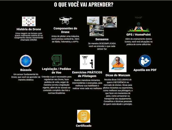 Nessa página temos todas as informações que voce precisa para ter a certeza que esse Curso de Drone Profissional é para Você!